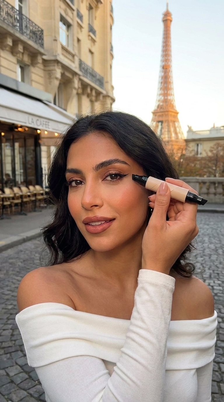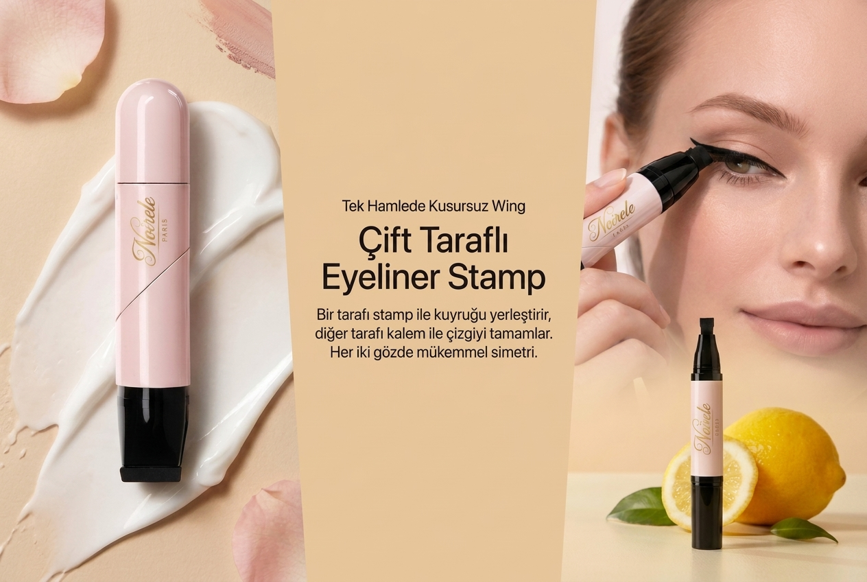 Sağ ve sol göz için ayrı stamp uçları. Suya dayanıklı formülü ile gün boyu yerinde kalır — ter, nem, gözyaşı fark etmez